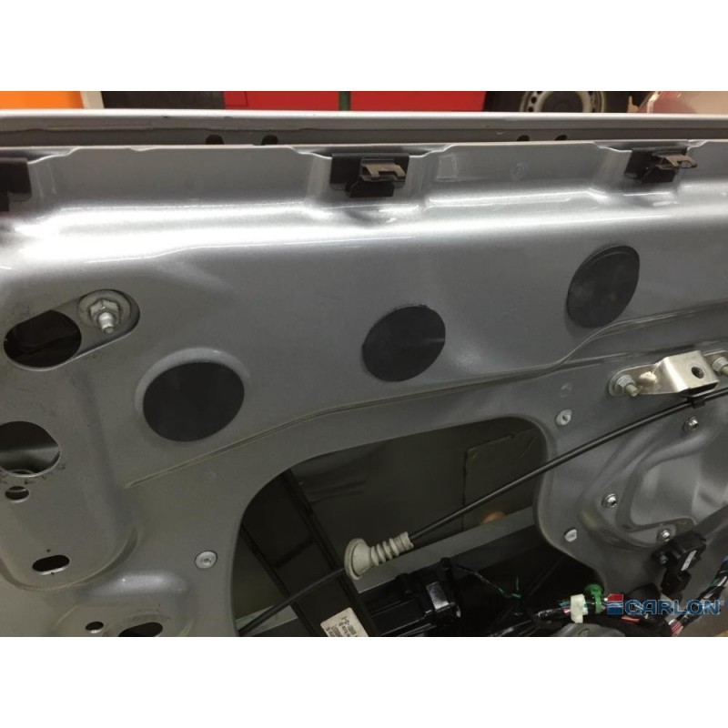 - Stickers die gebruikt worden voor het dichtplakken van schroefuitsparingen aan de zij-/ binnenkant van het autoportier.