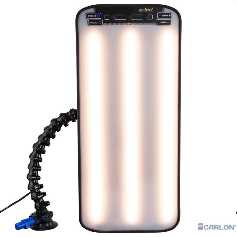 - LED lamp wit-geel-wit met zuignap en dimmer met 12V sigarettenaanstekerplug.